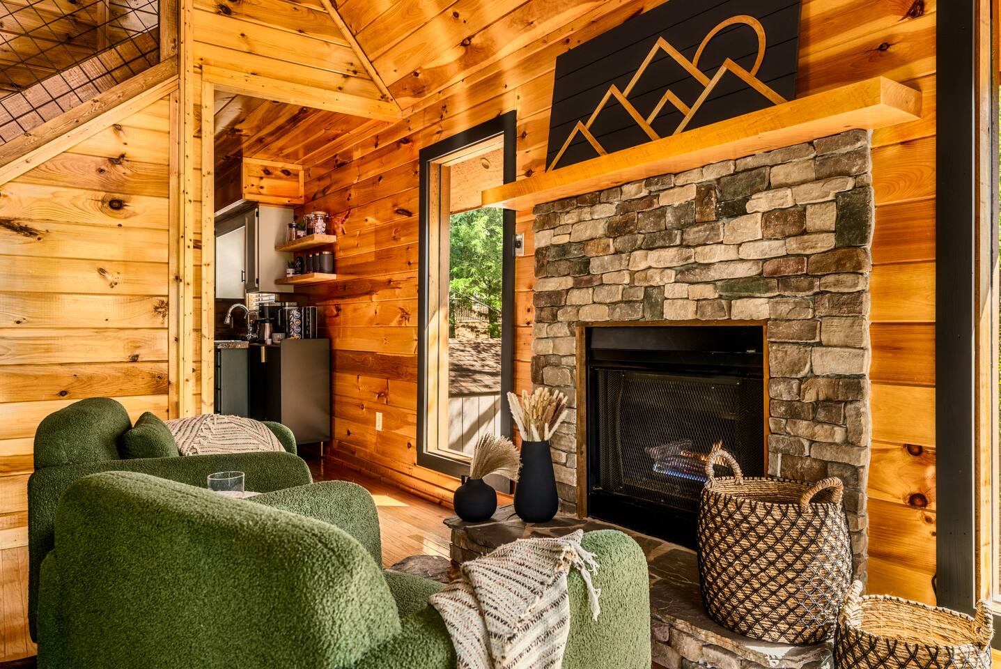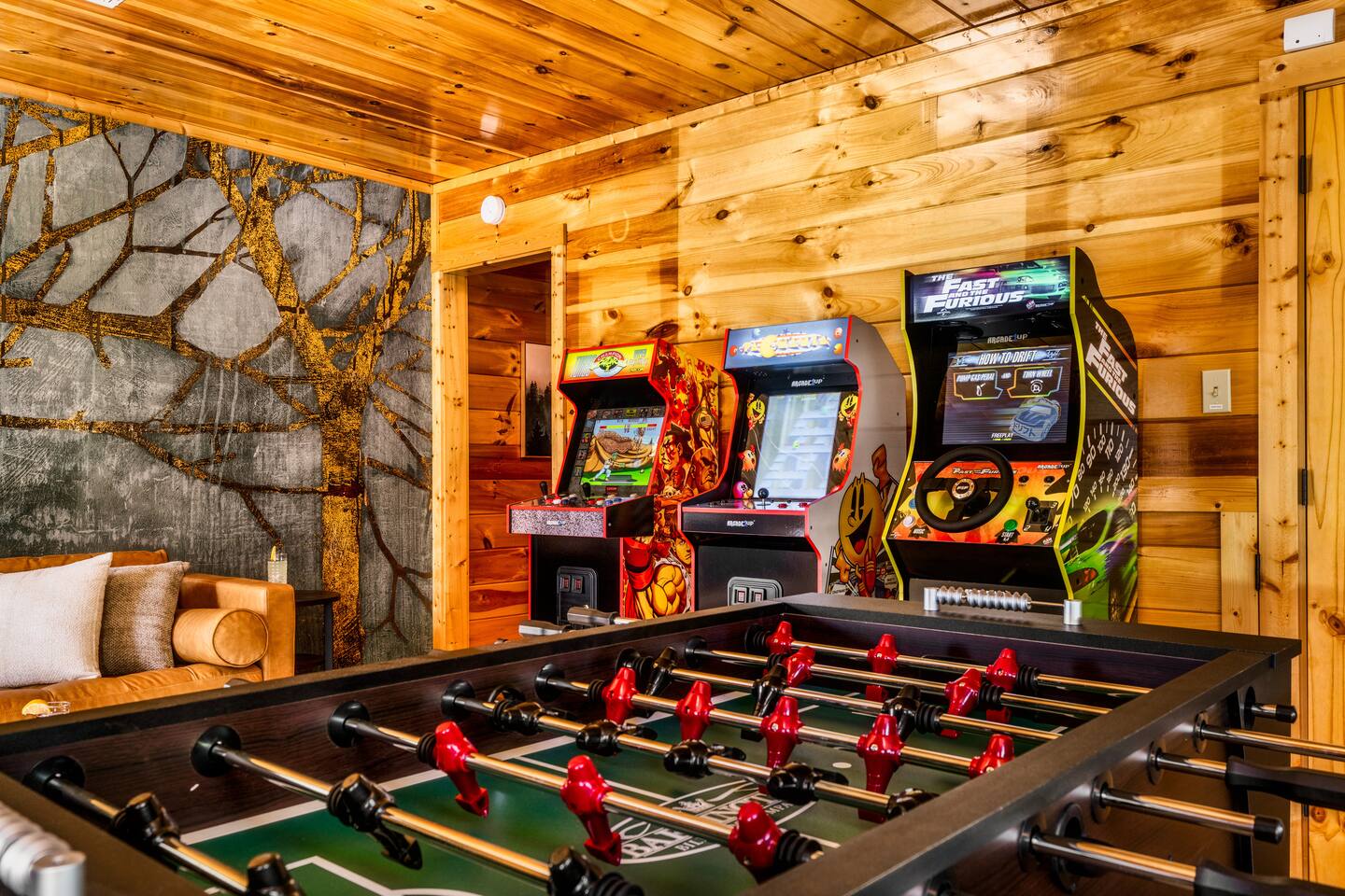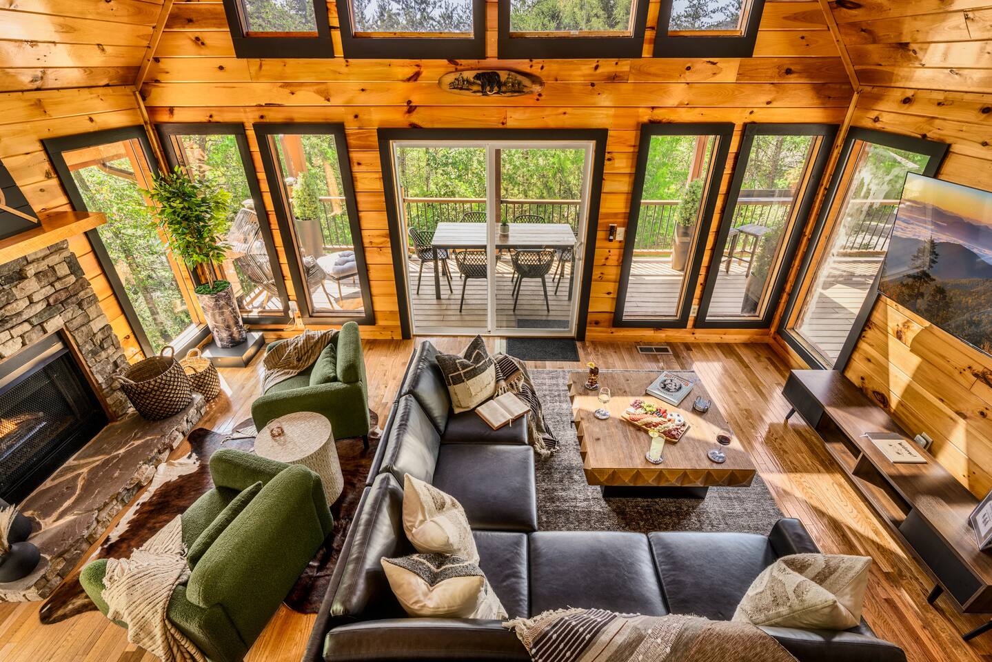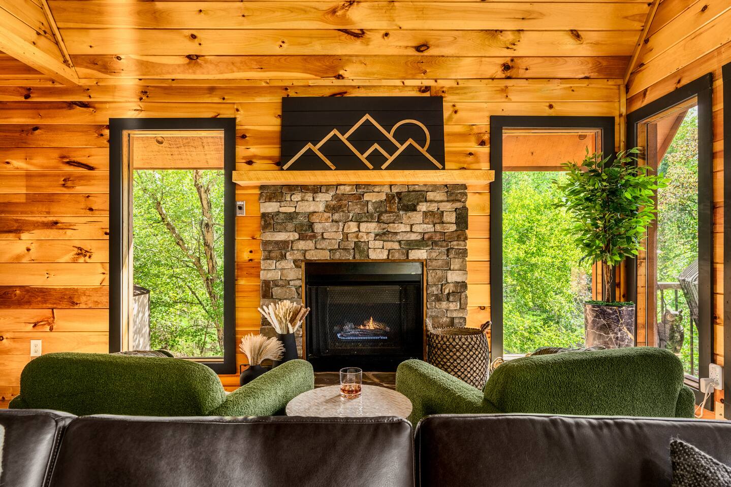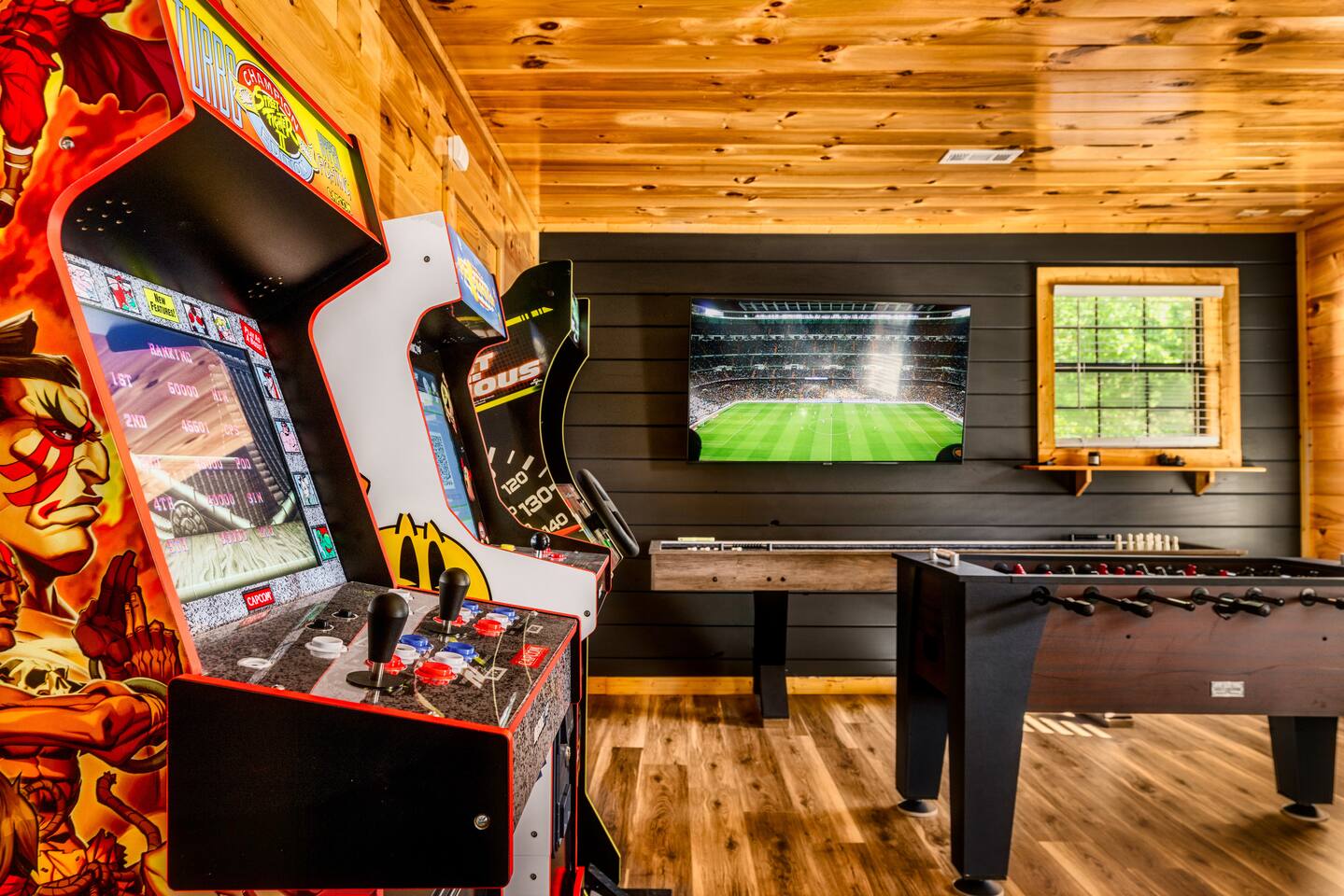 Enjoy a stylish experience at this centrally located cabin with a view! The cabin has gorgeous high cathedral ceilings and big floor to ceiling windows to bring in natural light. Knotty pine tongue and groove throughout. Brand new furniture decorated with a modern, cozy feel. In the morning, relax on the deck while taking in the view of the mountains. In the evening, enjoy the hot tub where you can see the view or relax with family around the fire pit. 11min Drive (typical) to Pkwy attractions HERE ARE A FEW KIND WORDS FROM PAST GUESTS: We have stayed in many cabins in the Great Smokey Mountains area, and this was our favorite by far! It was very easy to get to town from the cabin with smooth, paved roads. The cabin has been recently updated and is beautifully decorated with new furniture and decor. The details did not go unnoticed! I can’t wait to come back again and bring our kids. They would love the indoor and outdoor games. The only thing that could possibly have made our stay better would be to have seen a bear. :) -Andrea My family and I had a fantastic stay. This place was absolutely beautiful, and the interior design was delightful. It was just what we needed. We have no regrets. Our children and their friends built so many memories that I'm sure will last forever. Definitely need to return for a girl's weekend! -Karla Office Business Hours: 8am EST-8pm EST 7 days per week on Airbnb Messenger only. We are owner operated. We are real people with real jobs, just like you! BEDROOMS + BATHROOMS Each of the cabin’s 3 bedrooms is designed with guest comfort in mind. -King size bed - Large Dresser -2 nightstands with lamps -Roku TV Each bathroom is fully stocked for your convenience and comfort. -Shampoo & conditioner -Bodywash -Hand Soap & lotion -Plush towels Fall asleep and wake up refreshed for another exciting (or relaxing!) day in the mountains. Each bedroom is located on a different floor, allowing for privacy. Each bedroom has a King-sized bed. All beds have high quality, comfortable mattresses. Just like the bedrooms, the bathrooms are designed for comfort and relaxation. Each level of the cabin has a full-size bathroom. The main level bathroom and the upper bathroom are also connected to a bedroom, providing a guest suite. The lower-level bathroom is right outside of the lower-level bedroom making it very convenient. The main level has a large garden tub with jets. KITCHEN & DINING The kitchen is outfitted with all the cookware, dishes, utensils, dishwasher pods, and appliances you will need to cook delicious meals. There is a large dining table inside, but in nice weather, you will LOVE eating on the deck at the large dining table with the MOUNTAIN VIEWS. ⛰️ GAME ROOM -Queen size sleeper sofa -3 arcade games…Fast & Furious, Pac-Man and Street Fighter -Large shuffleboard table -Foosball table -Watch the big game on the 65” Smart TV -Full size washer and dryer LOFT STUDY This is a great area to work remotely. There are even beautiful mountain views from the desk! LIVING ROOM -65" Smart (Roku) TV -Sectional couch with mountain views -Cozy area to sit in front of the fireplace DECK -Large dining table with mountain views -Stools with a bar top to sip your coffee -Sitting area and egg chair -Gas grill -String lights LOWER-LEVEL PATIO -7-person hot tub -Porch Swing -Several areas to sit and enjoy family and friends. -2 Egg swings -String lights FIRE PIT -Wood burning fire pit, bring your own firewood or purchase locally. -8 Adirondack chairs -Park style charcoal grill, bring your own charcoal or purchase locally. -String lights CARPORT -This is an area that you can park your car to stay mostly dry on a rainy day or can be used to hang out and stay dry yourself. This is a 3-sided structure with a roof. -Patio lights -Corn hole -Water proof chest for storing outdoor pillows and throws for the fire pit area on cold nights.