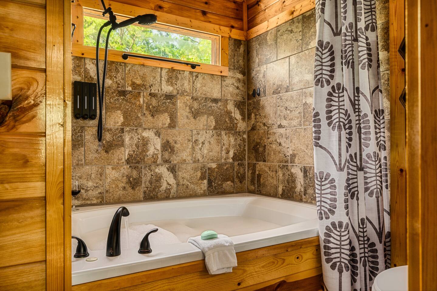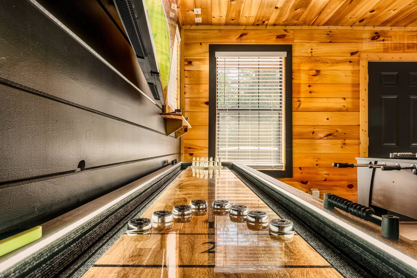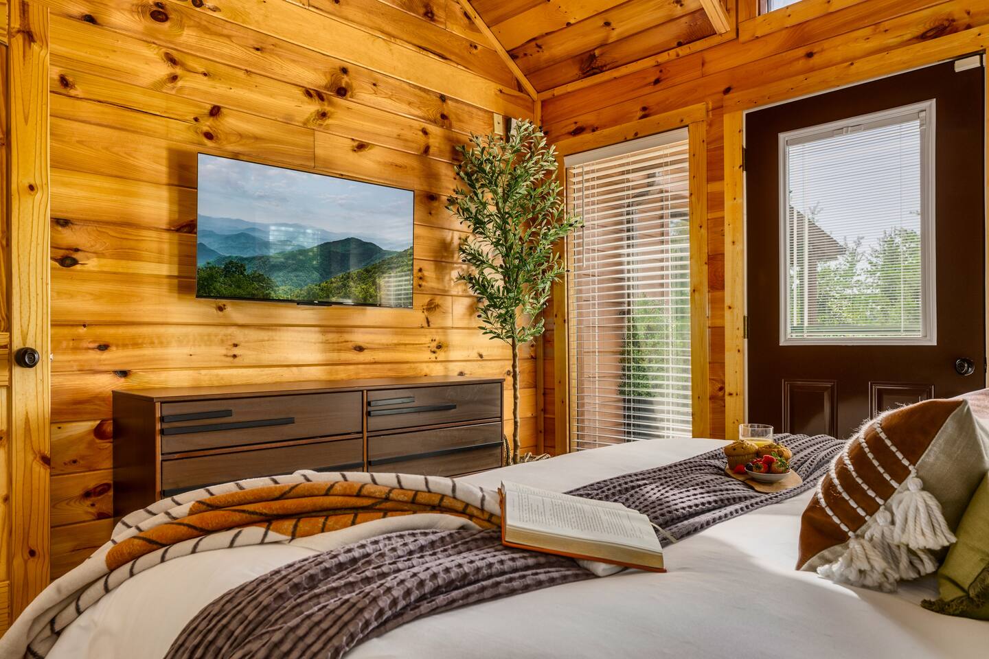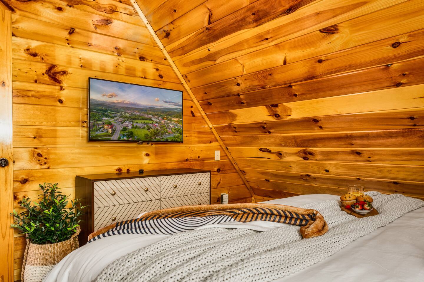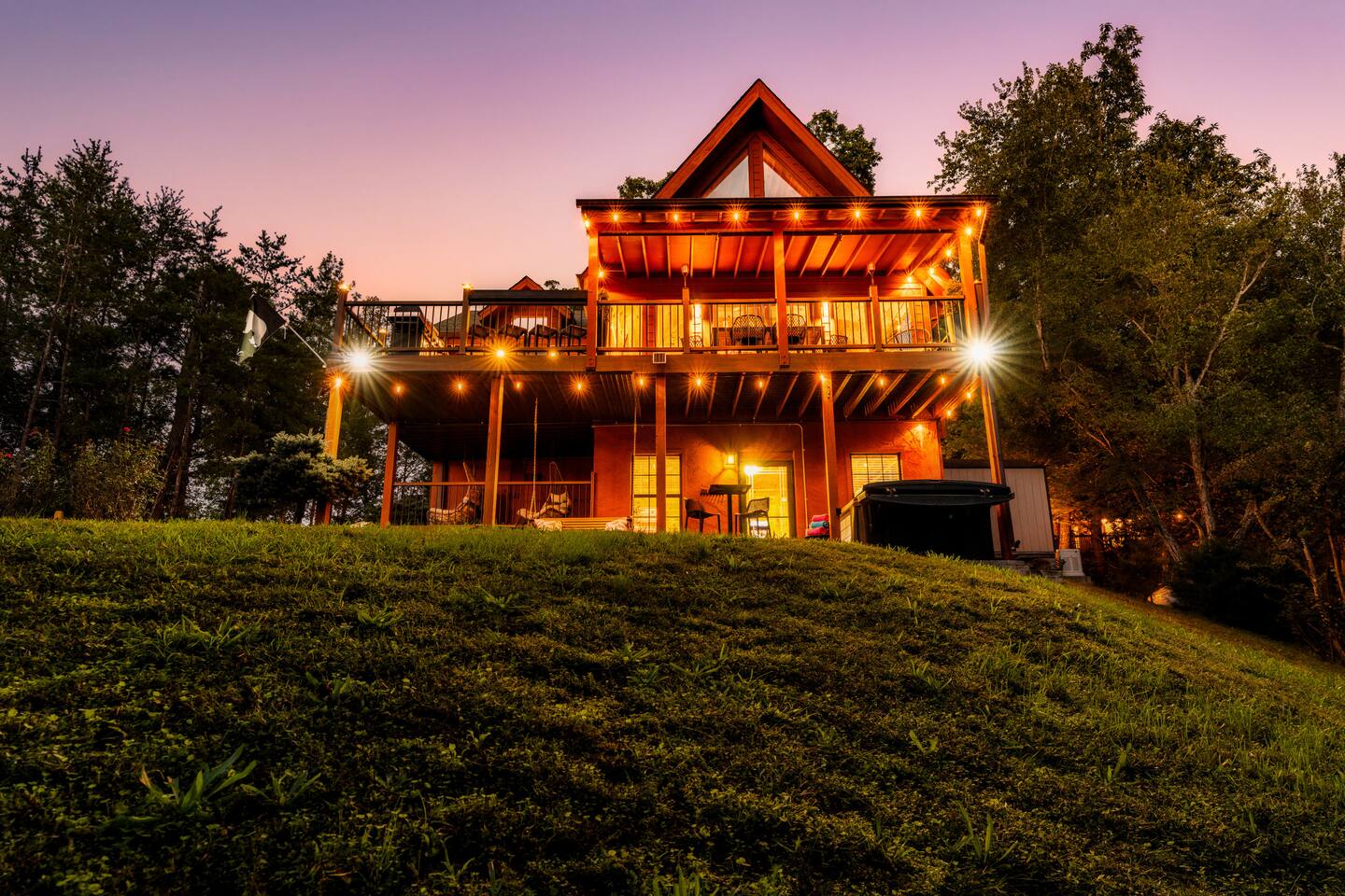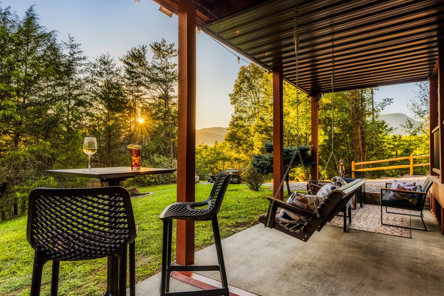 Enjoy a stylish experience at this centrally located cabin with a view! The cabin has gorgeous high cathedral ceilings and big floor to ceiling windows to bring in natural light. Knotty pine tongue and groove throughout. Brand new furniture decorated with a modern, cozy feel. In the morning, relax on the deck while taking in the view of the mountains. In the evening, enjoy the hot tub where you can see the view or relax with family around the fire pit. 11min Drive (typical) to Pkwy attractions HERE ARE A FEW KIND WORDS FROM PAST GUESTS: We have stayed in many cabins in the Great Smokey Mountains area, and this was our favorite by far! It was very easy to get to town from the cabin with smooth, paved roads. The cabin has been recently updated and is beautifully decorated with new furniture and decor. The details did not go unnoticed! I can’t wait to come back again and bring our kids. They would love the indoor and outdoor games. The only thing that could possibly have made our stay better would be to have seen a bear. :) -Andrea My family and I had a fantastic stay. This place was absolutely beautiful, and the interior design was delightful. It was just what we needed. We have no regrets. Our children and their friends built so many memories that I'm sure will last forever. Definitely need to return for a girl's weekend! -Karla Office Business Hours: 8am EST-8pm EST 7 days per week on Airbnb Messenger only. We are owner operated. We are real people with real jobs, just like you! BEDROOMS + BATHROOMS Each of the cabin’s 3 bedrooms is designed with guest comfort in mind. -King size bed - Large Dresser -2 nightstands with lamps -Roku TV Each bathroom is fully stocked for your convenience and comfort. -Shampoo & conditioner -Bodywash -Hand Soap & lotion -Plush towels Fall asleep and wake up refreshed for another exciting (or relaxing!) day in the mountains. Each bedroom is located on a different floor, allowing for privacy. Each bedroom has a King-sized bed. All beds have high quality, comfortable mattresses. Just like the bedrooms, the bathrooms are designed for comfort and relaxation. Each level of the cabin has a full-size bathroom. The main level bathroom and the upper bathroom are also connected to a bedroom, providing a guest suite. The lower-level bathroom is right outside of the lower-level bedroom making it very convenient. The main level has a large garden tub with jets. KITCHEN & DINING The kitchen is outfitted with all the cookware, dishes, utensils, dishwasher pods, and appliances you will need to cook delicious meals. There is a large dining table inside, but in nice weather, you will LOVE eating on the deck at the large dining table with the MOUNTAIN VIEWS. ⛰️ GAME ROOM -Queen size sleeper sofa -3 arcade games…Fast & Furious, Pac-Man and Street Fighter -Large shuffleboard table -Foosball table -Watch the big game on the 65” Smart TV -Full size washer and dryer LOFT STUDY This is a great area to work remotely. There are even beautiful mountain views from the desk! LIVING ROOM -65" Smart (Roku) TV -Sectional couch with mountain views -Cozy area to sit in front of the fireplace DECK -Large dining table with mountain views -Stools with a bar top to sip your coffee -Sitting area and egg chair -Gas grill -String lights LOWER-LEVEL PATIO -7-person hot tub -Porch Swing -Several areas to sit and enjoy family and friends. -2 Egg swings -String lights FIRE PIT -Wood burning fire pit, bring your own firewood or purchase locally. -8 Adirondack chairs -Park style charcoal grill, bring your own charcoal or purchase locally. -String lights CARPORT -This is an area that you can park your car to stay mostly dry on a rainy day or can be used to hang out and stay dry yourself. This is a 3-sided structure with a roof. -Patio lights -Corn hole -Water proof chest for storing outdoor pillows and throws for the fire pit area on cold nights.