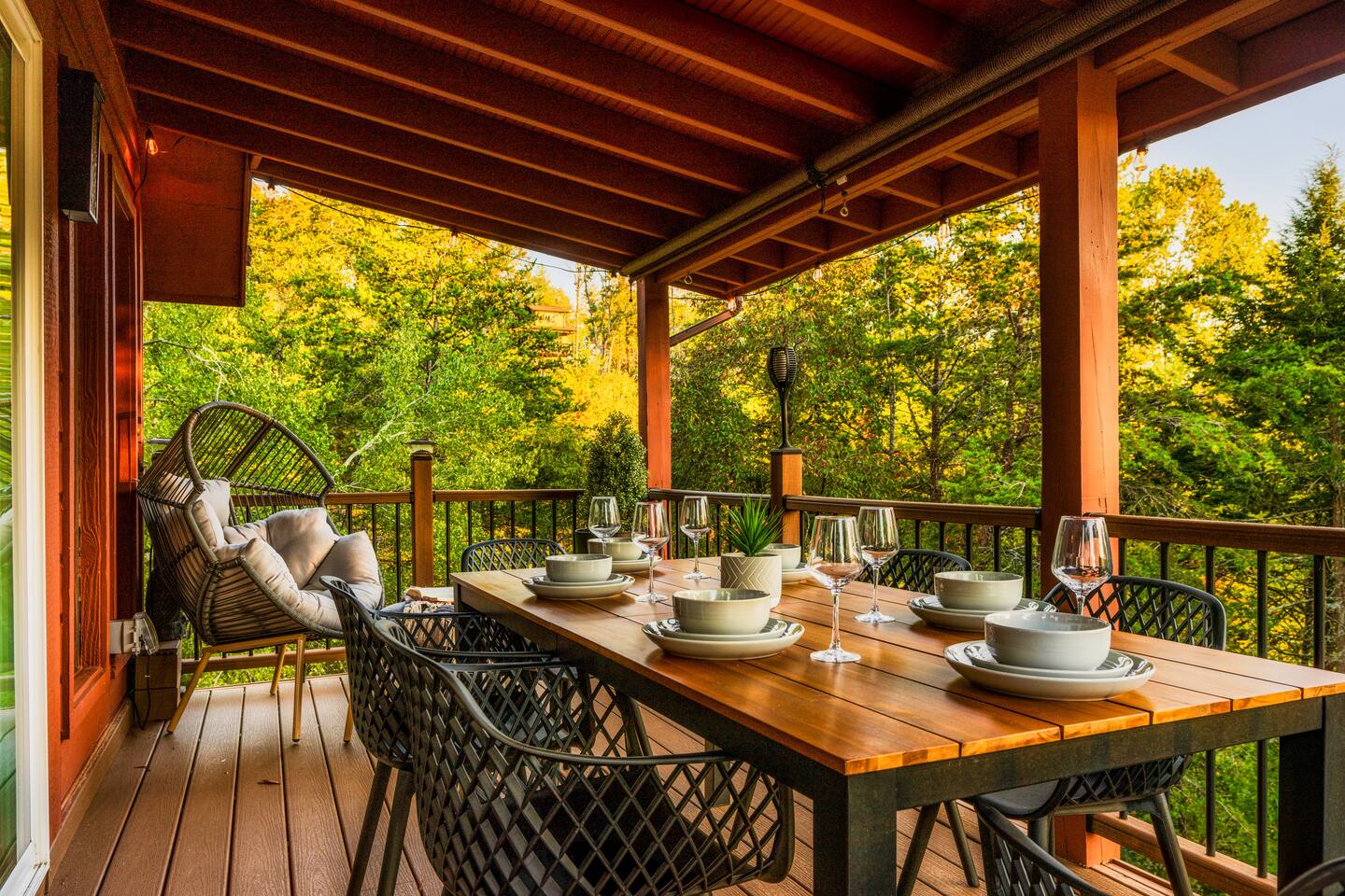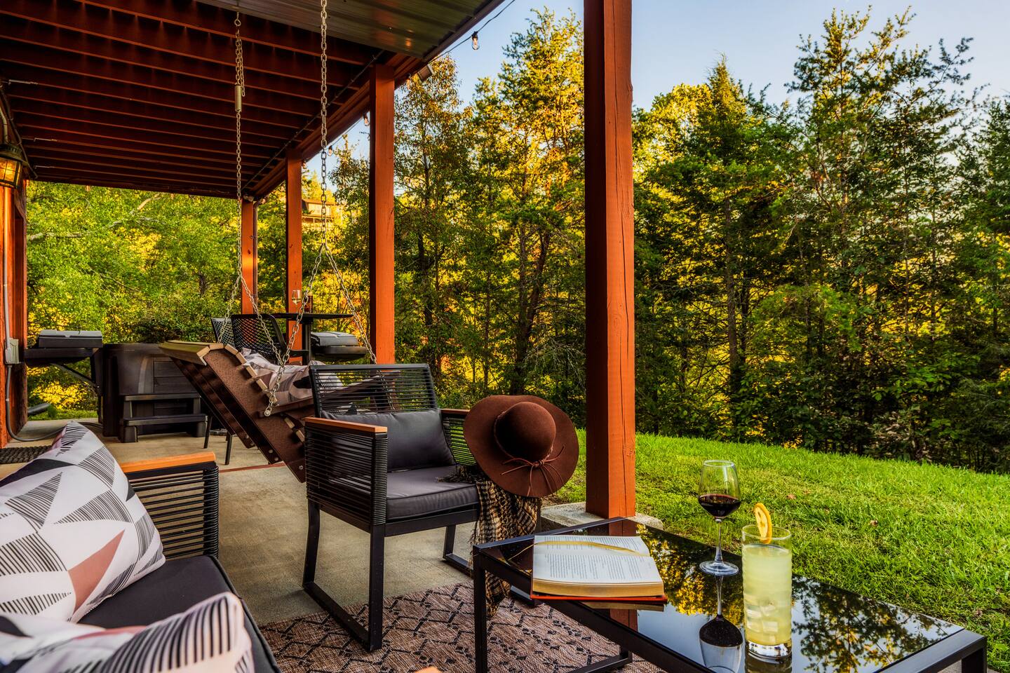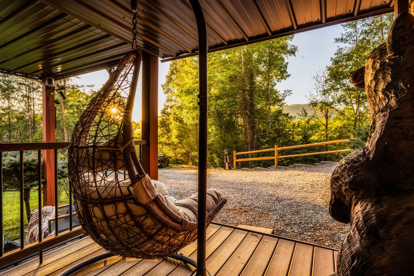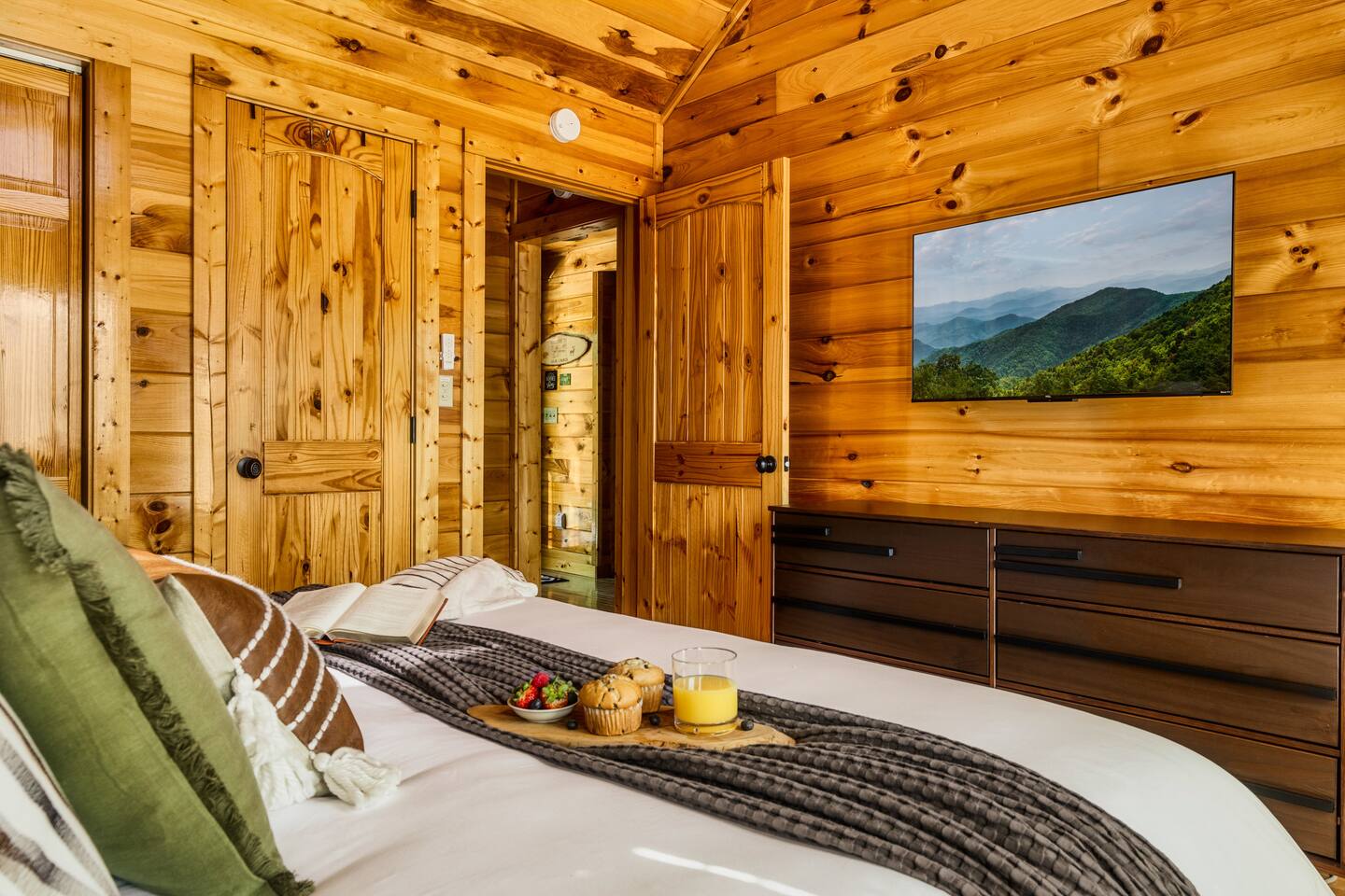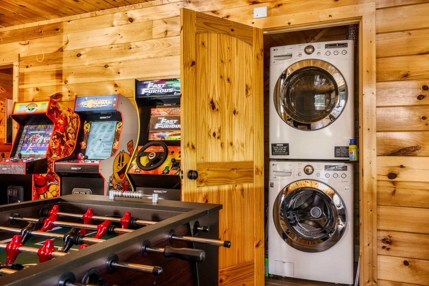 Enjoy a stylish experience at this centrally located cabin with a view! The cabin has gorgeous high cathedral ceilings and big floor to ceiling windows to bring in natural light. Knotty pine tongue and groove throughout. Brand new furniture decorated with a modern, cozy feel. In the morning, relax on the deck while taking in the view of the mountains. In the evening, enjoy the hot tub where you can see the view or relax with family around the fire pit. 11min Drive (typical) to Pkwy attractions HERE ARE A FEW KIND WORDS FROM PAST GUESTS: We have stayed in many cabins in the Great Smokey Mountains area, and this was our favorite by far! It was very easy to get to town from the cabin with smooth, paved roads. The cabin has been recently updated and is beautifully decorated with new furniture and decor. The details did not go unnoticed! I can’t wait to come back again and bring our kids. They would love the indoor and outdoor games. The only thing that could possibly have made our stay better would be to have seen a bear. :) -Andrea My family and I had a fantastic stay. This place was absolutely beautiful, and the interior design was delightful. It was just what we needed. We have no regrets. Our children and their friends built so many memories that I'm sure will last forever. Definitely need to return for a girl's weekend! -Karla Office Business Hours: 8am EST-8pm EST 7 days per week on Airbnb Messenger only. We are owner operated. We are real people with real jobs, just like you! BEDROOMS + BATHROOMS Each of the cabin’s 3 bedrooms is designed with guest comfort in mind. -King size bed - Large Dresser -2 nightstands with lamps -Roku TV Each bathroom is fully stocked for your convenience and comfort. -Shampoo & conditioner -Bodywash -Hand Soap & lotion -Plush towels Fall asleep and wake up refreshed for another exciting (or relaxing!) day in the mountains. Each bedroom is located on a different floor, allowing for privacy. Each bedroom has a King-sized bed. All beds have high quality, comfortable mattresses. Just like the bedrooms, the bathrooms are designed for comfort and relaxation. Each level of the cabin has a full-size bathroom. The main level bathroom and the upper bathroom are also connected to a bedroom, providing a guest suite. The lower-level bathroom is right outside of the lower-level bedroom making it very convenient. The main level has a large garden tub with jets. KITCHEN & DINING The kitchen is outfitted with all the cookware, dishes, utensils, dishwasher pods, and appliances you will need to cook delicious meals. There is a large dining table inside, but in nice weather, you will LOVE eating on the deck at the large dining table with the MOUNTAIN VIEWS. ⛰️ GAME ROOM -Queen size sleeper sofa -3 arcade games…Fast & Furious, Pac-Man and Street Fighter -Large shuffleboard table -Foosball table -Watch the big game on the 65” Smart TV -Full size washer and dryer LOFT STUDY This is a great area to work remotely. There are even beautiful mountain views from the desk! LIVING ROOM -65" Smart (Roku) TV -Sectional couch with mountain views -Cozy area to sit in front of the fireplace DECK -Large dining table with mountain views -Stools with a bar top to sip your coffee -Sitting area and egg chair -Gas grill -String lights LOWER-LEVEL PATIO -7-person hot tub -Porch Swing -Several areas to sit and enjoy family and friends. -2 Egg swings -String lights FIRE PIT -Wood burning fire pit, bring your own firewood or purchase locally. -8 Adirondack chairs -Park style charcoal grill, bring your own charcoal or purchase locally. -String lights CARPORT -This is an area that you can park your car to stay mostly dry on a rainy day or can be used to hang out and stay dry yourself. This is a 3-sided structure with a roof. -Patio lights -Corn hole -Water proof chest for storing outdoor pillows and throws for the fire pit area on cold nights.