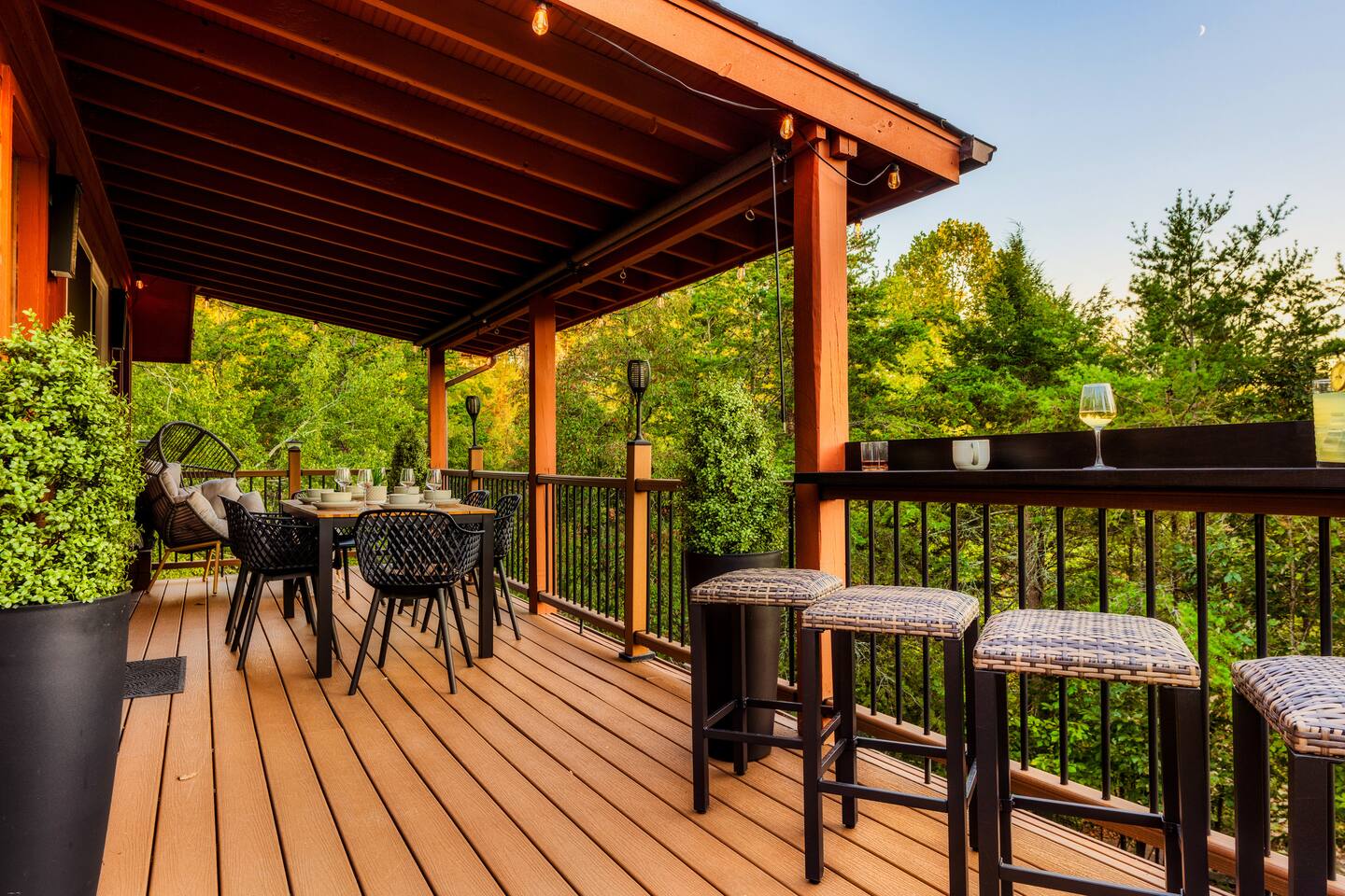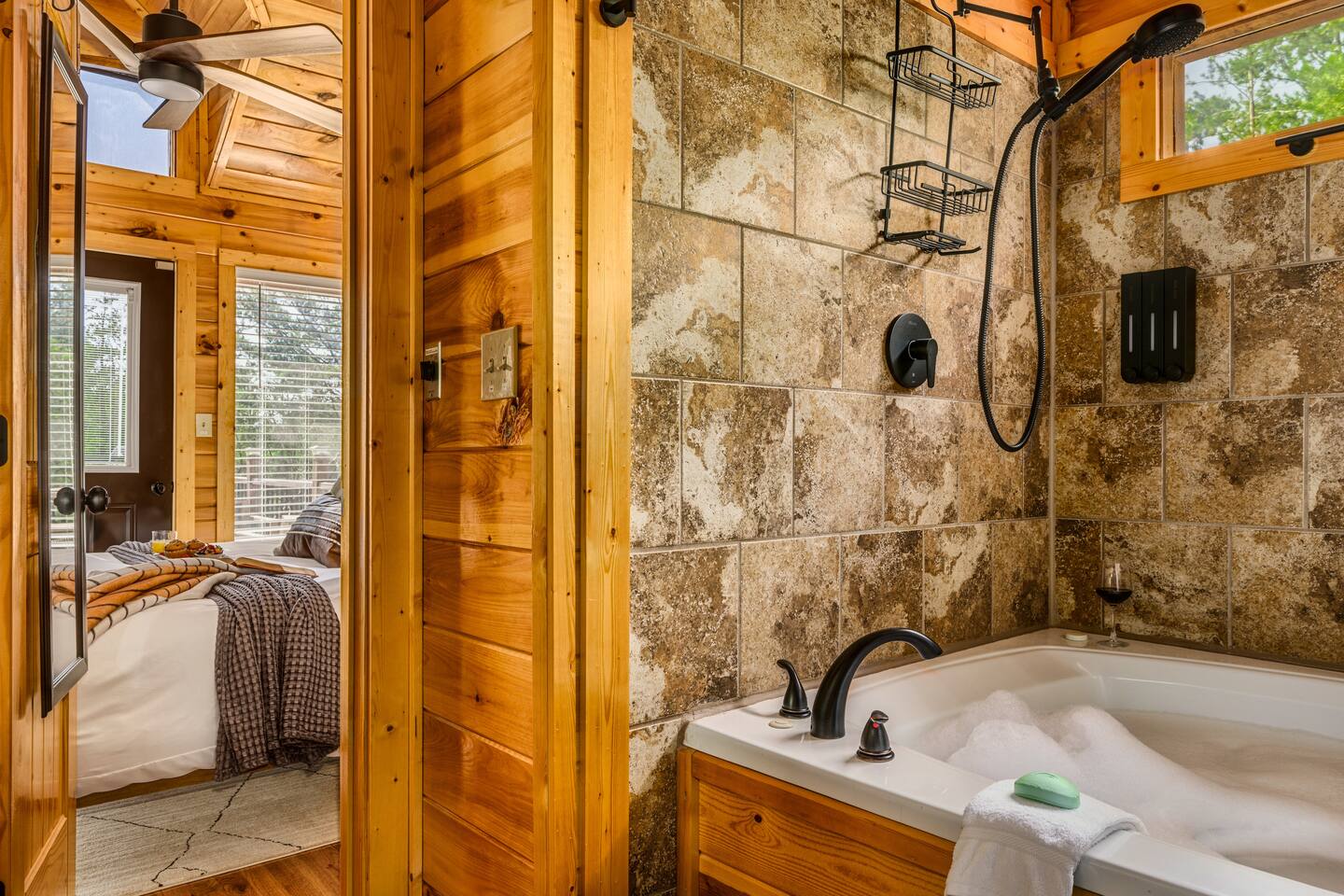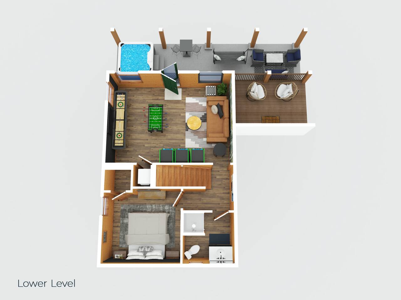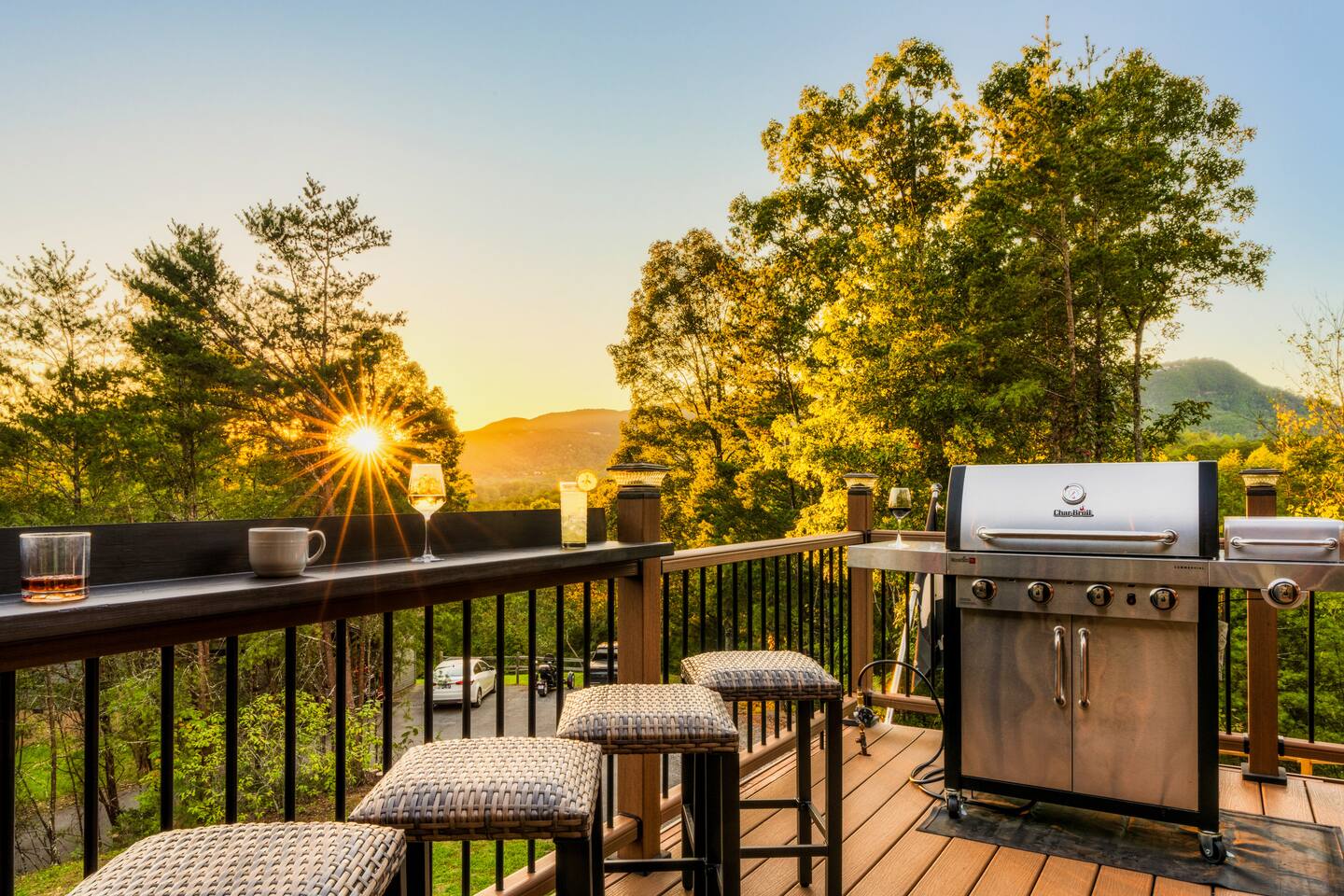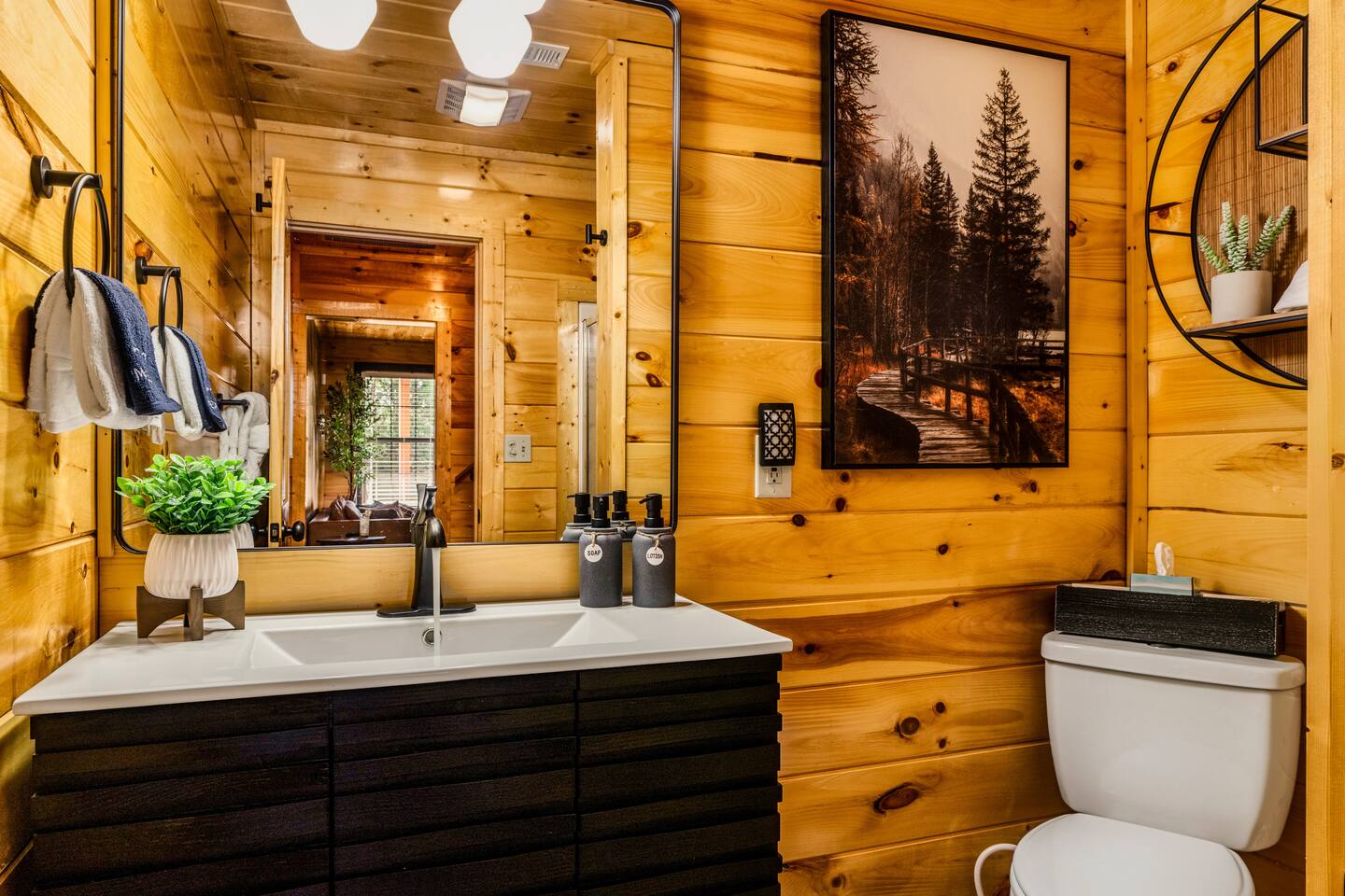 Enjoy a stylish experience at this centrally located cabin with a view! The cabin has gorgeous high cathedral ceilings and big floor to ceiling windows to bring in natural light. Knotty pine tongue and groove throughout. Brand new furniture decorated with a modern, cozy feel. In the morning, relax on the deck while taking in the view of the mountains. In the evening, enjoy the hot tub where you can see the view or relax with family around the fire pit. 11min Drive (typical) to Pkwy attractions HERE ARE A FEW KIND WORDS FROM PAST GUESTS: We have stayed in many cabins in the Great Smokey Mountains area, and this was our favorite by far! It was very easy to get to town from the cabin with smooth, paved roads. The cabin has been recently updated and is beautifully decorated with new furniture and decor. The details did not go unnoticed! I can’t wait to come back again and bring our kids. They would love the indoor and outdoor games. The only thing that could possibly have made our stay better would be to have seen a bear. :) -Andrea My family and I had a fantastic stay. This place was absolutely beautiful, and the interior design was delightful. It was just what we needed. We have no regrets. Our children and their friends built so many memories that I'm sure will last forever. Definitely need to return for a girl's weekend! -Karla Office Business Hours: 8am EST-8pm EST 7 days per week on Airbnb Messenger only. We are owner operated. We are real people with real jobs, just like you! BEDROOMS + BATHROOMS Each of the cabin’s 3 bedrooms is designed with guest comfort in mind. -King size bed - Large Dresser -2 nightstands with lamps -Roku TV Each bathroom is fully stocked for your convenience and comfort. -Shampoo & conditioner -Bodywash -Hand Soap & lotion -Plush towels Fall asleep and wake up refreshed for another exciting (or relaxing!) day in the mountains. Each bedroom is located on a different floor, allowing for privacy. Each bedroom has a King-sized bed. All beds have high quality, comfortable mattresses. Just like the bedrooms, the bathrooms are designed for comfort and relaxation. Each level of the cabin has a full-size bathroom. The main level bathroom and the upper bathroom are also connected to a bedroom, providing a guest suite. The lower-level bathroom is right outside of the lower-level bedroom making it very convenient. The main level has a large garden tub with jets. KITCHEN & DINING The kitchen is outfitted with all the cookware, dishes, utensils, dishwasher pods, and appliances you will need to cook delicious meals. There is a large dining table inside, but in nice weather, you will LOVE eating on the deck at the large dining table with the MOUNTAIN VIEWS. ⛰️ GAME ROOM -Queen size sleeper sofa -3 arcade games…Fast & Furious, Pac-Man and Street Fighter -Large shuffleboard table -Foosball table -Watch the big game on the 65” Smart TV -Full size washer and dryer LOFT STUDY This is a great area to work remotely. There are even beautiful mountain views from the desk! LIVING ROOM -65" Smart (Roku) TV -Sectional couch with mountain views -Cozy area to sit in front of the fireplace DECK -Large dining table with mountain views -Stools with a bar top to sip your coffee -Sitting area and egg chair -Gas grill -String lights LOWER-LEVEL PATIO -7-person hot tub -Porch Swing -Several areas to sit and enjoy family and friends. -2 Egg swings -String lights FIRE PIT -Wood burning fire pit, bring your own firewood or purchase locally. -8 Adirondack chairs -Park style charcoal grill, bring your own charcoal or purchase locally. -String lights CARPORT -This is an area that you can park your car to stay mostly dry on a rainy day or can be used to hang out and stay dry yourself. This is a 3-sided structure with a roof. -Patio lights -Corn hole -Water proof chest for storing outdoor pillows and throws for the fire pit area on cold nights.