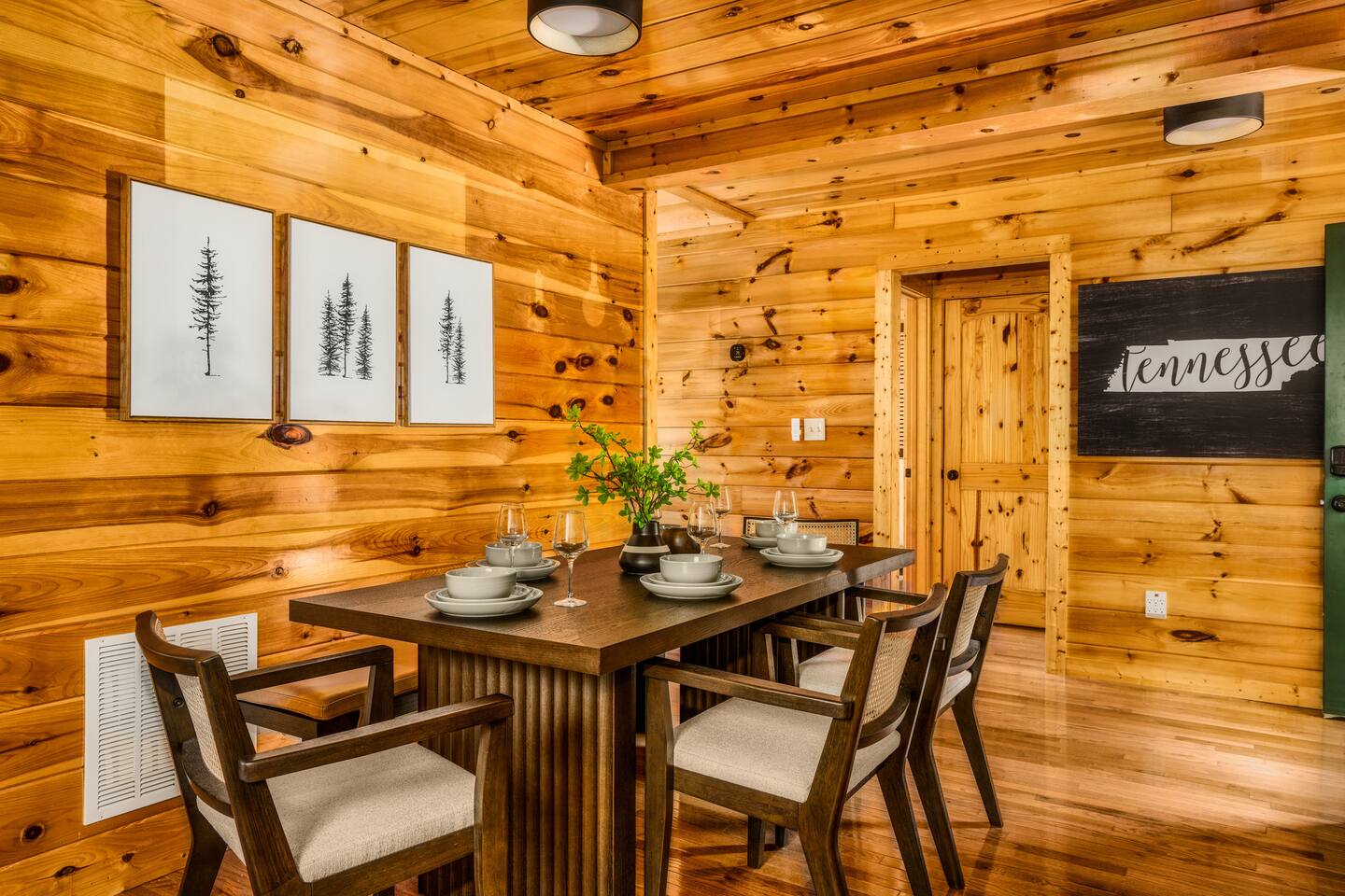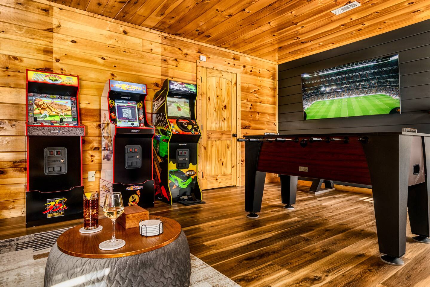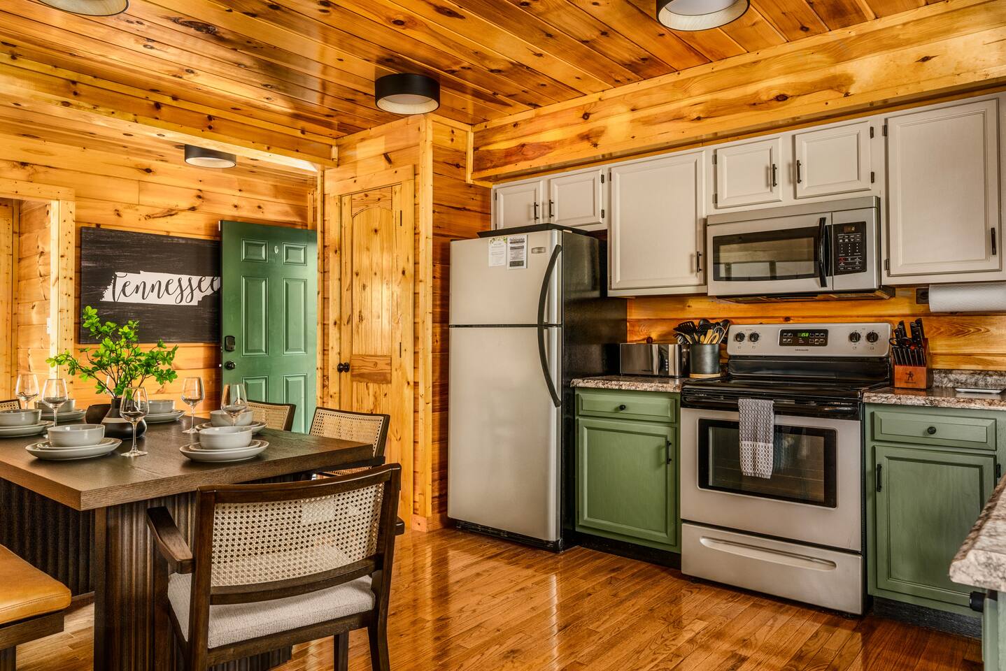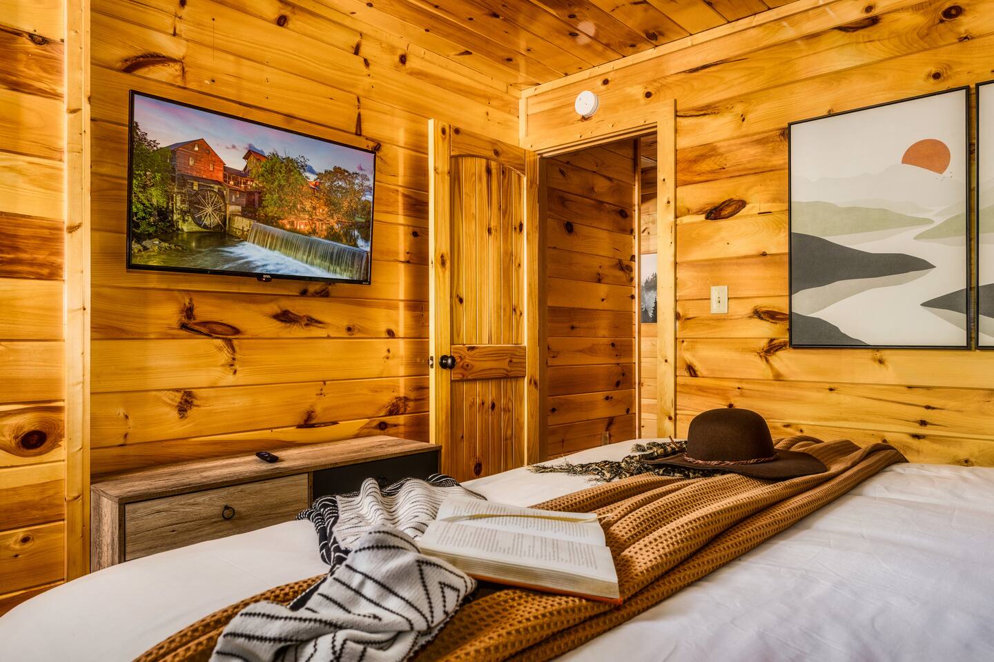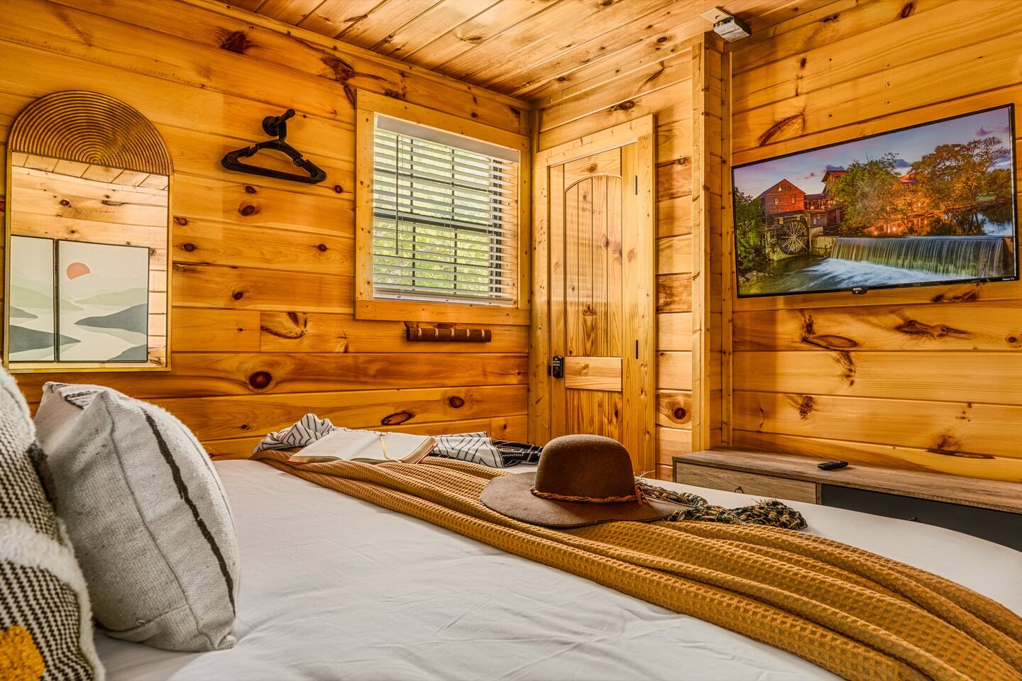 ⭐️Cozy, modern cabin, everything NEW! 🛏️3 bedrooms; 3 kings, 1 queen sleeper sofa 🛀3 bathrooms 📍Close to Pigeon Forge/Gatlinburg, but far enough for privacy. ♨️Hot tub with views, surrounding nature 🔥Fireplace & outdoor fire pit ☕️Coffee bar, tea, hot chocolate 🕹️Arcade games, foosball, shuffleboard 📺Smart TVs & fast WiFi 🥩Gas grill & charcoal park grill 🧺Washer/dryer 👶High-chair, Pack'n Play, kitchenware 🏎️Carport 🔌Generator, never lose power 💦Reverse osmosis water/kitchen