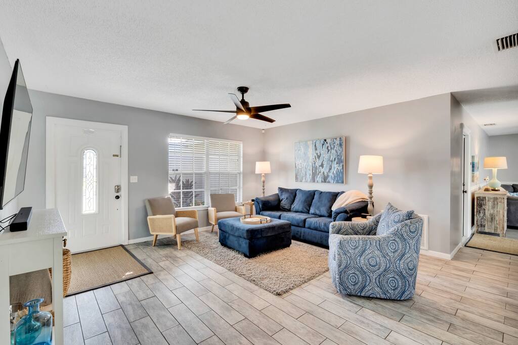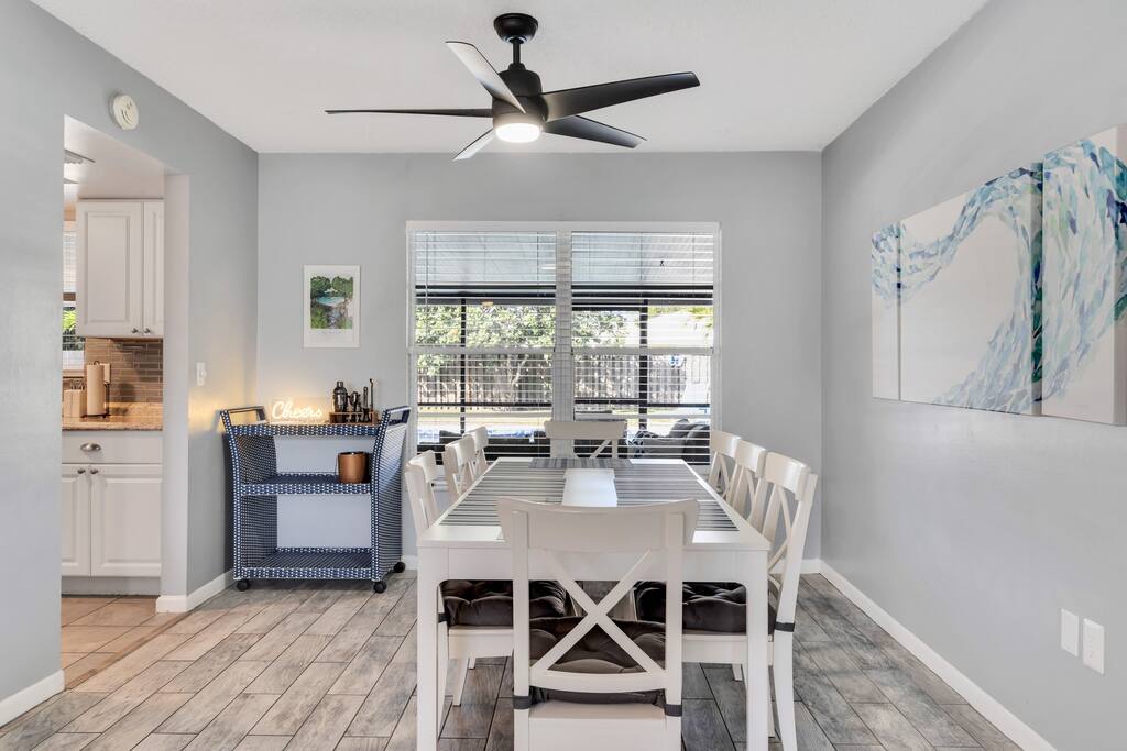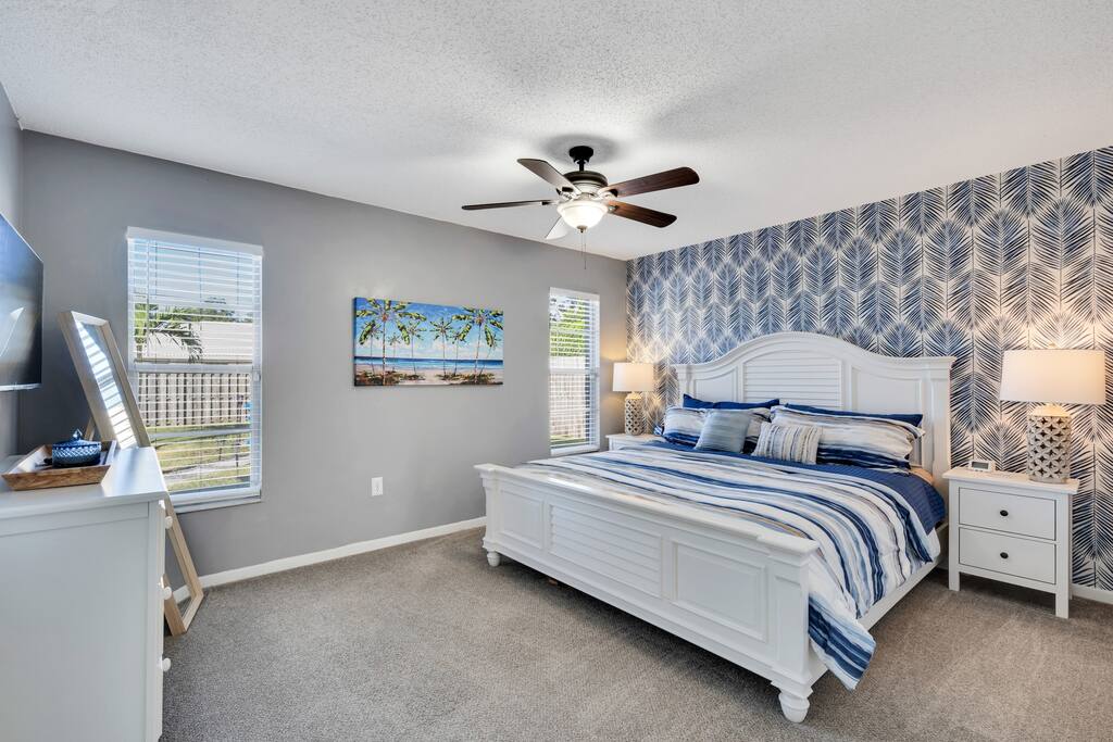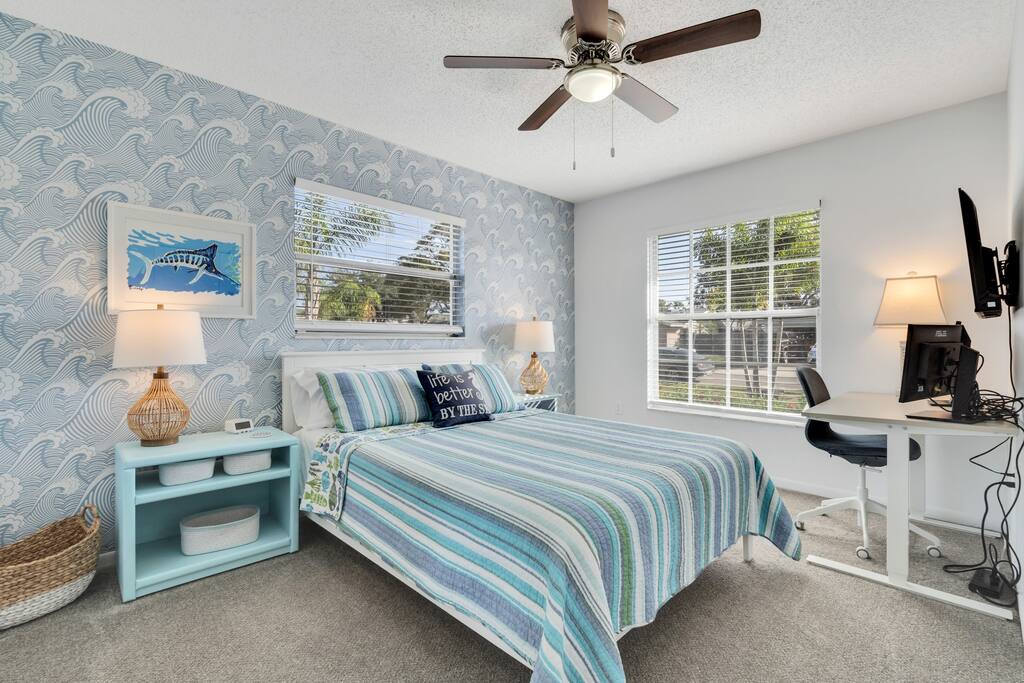 ☀️4 bedrooms; 1 king, 3 queens ☀️2 full bathrooms ☀️Spacious pool ☀️Large, screened lanai ☀️Spacious backyard/firepit w/Adirondack chairs ☀️Several games to entertain the whole family ☀️Gas Grill ☀️High speed (500 Mbps) wired fiber/Wi-Fi router ☀️Two monitors, desk ☀️Close to activities, restaurants, beach, sightseeing. ☀️IMG, Premier Sports Campus at Lakewood Ranch, Sarasota Airport, art galleries, Lido and Longboat Keys, aquarium, museums, theaters and Marie Selby Botanical Gardens nearby!