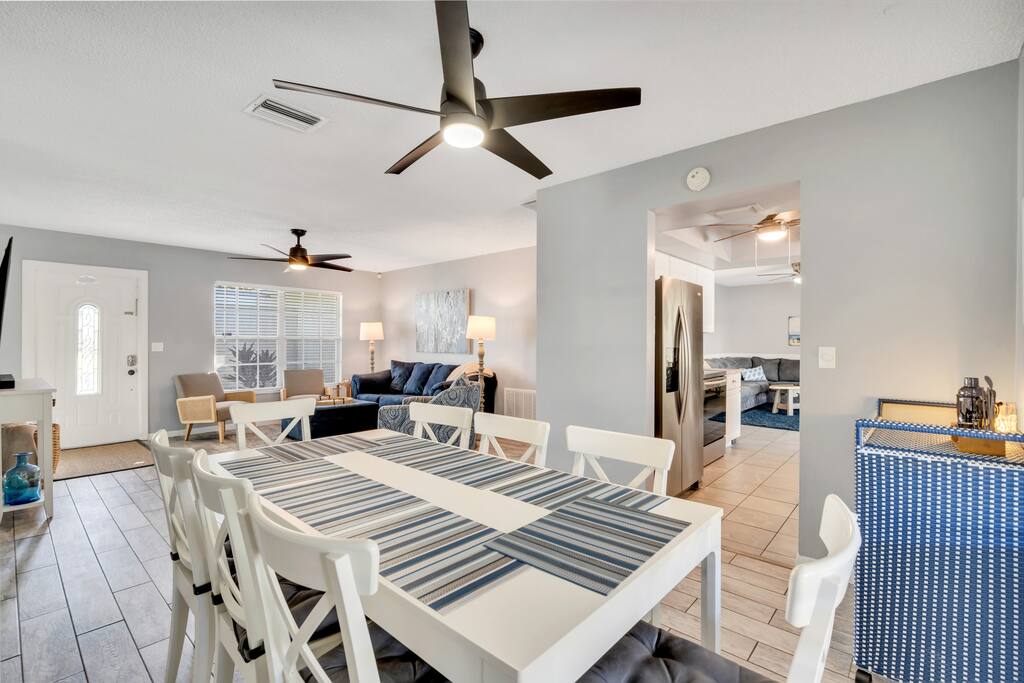 Experience true relaxation in this peaceful pool home getaway with amenities ideal for families! You will love lounging by the pool or enjoying the spacious, screened lanai. We are located in a quiet neighborhood and back up to a retirement community. 15 minutes to Anna Maria Island beaches 10 minutes to IMG Academy 9 minutes to Robinson Preserve Plus, nearby arts, museums, grocery stores, local restaurants and retail stores. Recharge and relax with the whole family at this peaceful home away from home! HERE ARE A FEW KIND WORDS FROM OUR PAST GUESTS: "This is a really awesome house. It's like a dream!" -Daniel "Maria and Rick were fantastic as hosts. The house was spectacular and looked exactly what the images showed online. The house was very clean and had everything we needed. Location was perfect and close to the beaches, restaurants and stores. The stuff that was available in the garage to take to the beach was an amazing plus! 100% would recommend staying here! You've won't regret it!"-Svetlana "This place is awesome. The location is great-close to shops, restaurants and beaches. The house has everything you need; it's clean, comfortable and the games and beach chairs/toys were an added bonus. The kids loved the pool, and it was always the perfect temperature."-Neil Office Business Hours: 8am EST-8pm EST 7 days per week on Airbnb Messenger only. We are owner operated. We are real people with real jobs, just like you! POOL AND OUTDOOR AREA Pool surrounded by deck, large backyard with privacy fence, and covered and screened lanai. This large pool and lanai with dining table and conversation set are perfect for enjoying all that Florida offers on your vacation in the sun with family and friends. Pool heat is $25/day, and settings are scheduled and set to 86 degrees from November 1 to April 30. However, when air temperatures drop below 70 degrees it can affect the pool temperature. Unfortunately, the pool temperature cannot be guaranteed. **Please let us know at least 72hrs in advance of your stay if you want pool heat. GAMES We have foosball, ping pong, cornhole and connect 4 games for your enjoyment. LIVING ROOM AND FAMILY ROOM This home has two comfortable living room areas. Both spaces include smart TVs with plenty of seating room for guests. KITCHEN AND DINING AREA The kitchen is fully equipped with dishes, glasses, pots, pans, knives and everything you might need: oven, toaster, coffee maker, blender, and microwave. If you don't feel like eating a meal on the covered and screened lanai overlooking the pool and yard, there is a full dining room inside. BEDROOMS AND BATHROOMS Each of the 4 bedrooms has quality mattresses and smart TVs. MASTER BEDROOM King bed Smart TV Large dresser Two night stands with lights SECOND BEDROOM Queen bed Smart TV Two night stands with lights Desk and office chair with two monitors THIRD BEDROOM Queen bed Smart TV One dresser Two night stands with lights FOURTH BEDROOM Queen bed Smart TV Two night stands with lights AMENITIES High-quality bed linens Private pool with free heat Games 6 flat screen smart HD TVs 500 mbps fiber wi-fi internet Coffee maker and Keurig